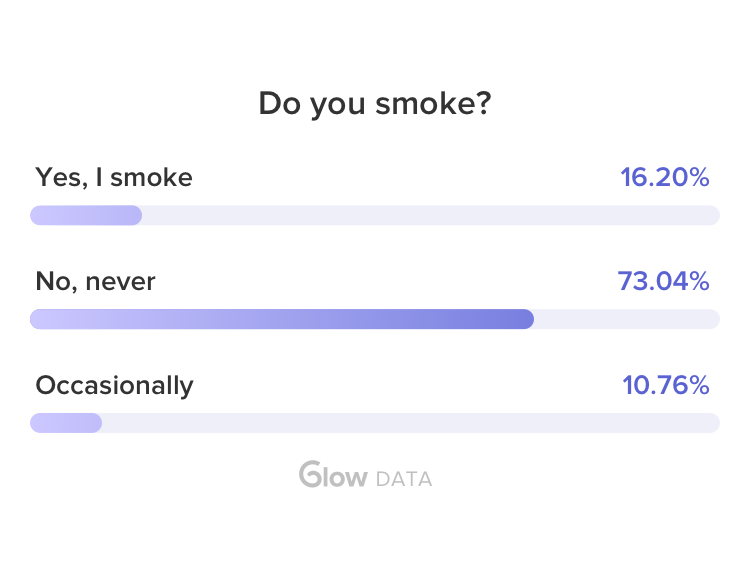 That said, plenty of people still smoke, despite the known risks. In a survey of 94,000 Glow users who are actively trying to conceive, 16% said they smoked. What's more, the data shows that about 30% of women of reproductive age in the US are regular smokers.