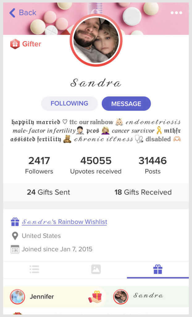My name is Sandra, I’m located in good ol Nebraska! I’m currently disabled. So these days I put most of my time and energy into the Glow Community and being an Advocate, trying to be that voice for those dealing with Infertility as well as mental and physical disabilities.